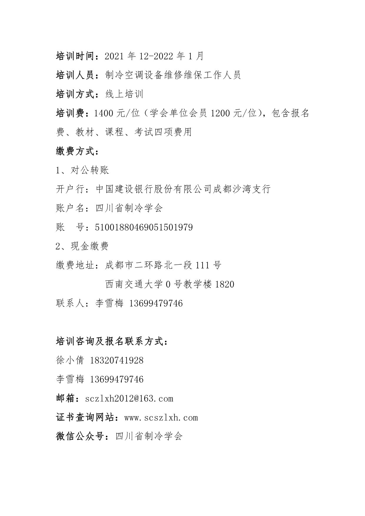 關于舉辦“第六期四川省中央空調維修維保技術人員培訓”的通知